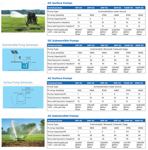 We bring you Standalone- Solar Powered AC/DC Pumping systems. Our system provides both dual AC and DC range of pumps suitable for Surface, Bore well and Open Well applications. These pumps can be used for various applications: Agriculture irrigation, drinking water (replacement of hand pump & dual hand pump). Customized solutions are available on request